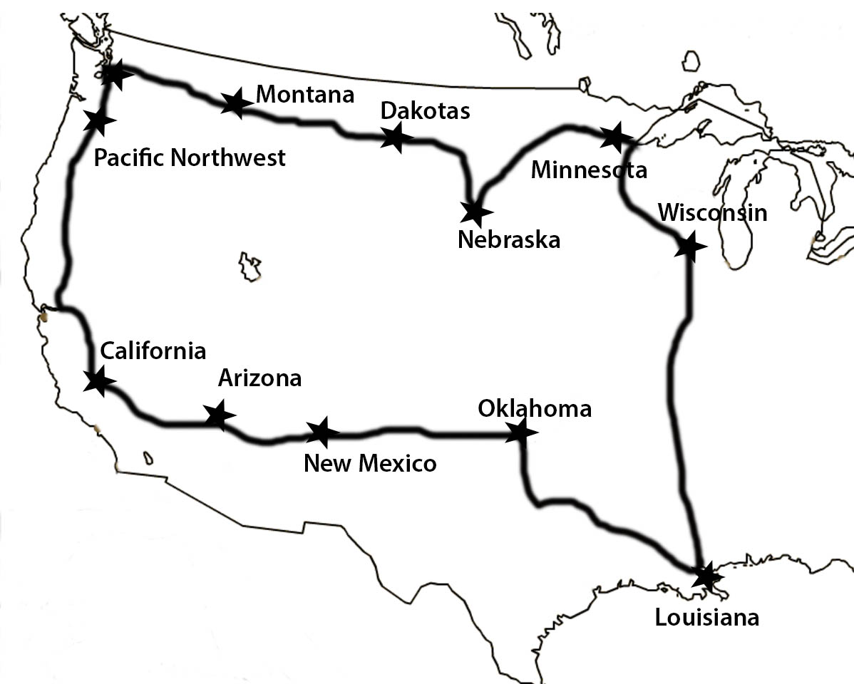 The “Reconnecting the Tribal Trade Routes Roadtrip” is an effort to bring attention to the unique Native food products and artwork from across the country.  The Mobile Farmers Market van started the roadtrip in mid-December when it picked up wild rice, maple syrup, and other products in northern Minnesota.  The roadtrip officially kicked off in early January, making the drive from Wisconsin to Louisiana before heading to Oklahoma, New Mexico, Arizona, and the West Coast.  The trip will then visit Montana and the Dakotas en route to concluding  during March back in Minnesota.